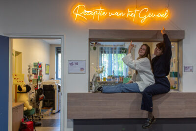 In deze afrondende presentatie blikken Rajja en Judith terug op een heel schooljaar vol ervaringen, pogingen, gesprekken, nachtmerries, successen, inzichten en verbindingen. Vers uit hun creatieve theaterbubbel gestapt, doken Rajja en Judith (of zoals een docent op het Graaf Huyn ze noemde: ‘die schaamteloze, alternatieve Noorderlingen’) in september 2023 vol de bubbel van deze middelbare school in. Met angst, enthousiasme, zweet, tranen, plezier, rode wangen en kloppende harten liepen ze tegen vragen aan als: Hoe verbind je je met iemand die totaal anders denkt dan jij? Waarom leer je op school wel hoe je wiskundesommen moet maken, maar niet hoe je een gezonde relatie met jezelf ontwikkelt? En hoe creëer je een inclusieve, open en liefdevolle sfeer waarin iedereen zich veilig voelt om zichzelf te zijn? Via opeenvolgende theatrale interventies over talloze onderwerpen die ze vanuit de schoolgemeenschap opdiepten, baanden Rajja en Judith zich een weg door de gangen van het Graaf Huyn. Met als doel de leerlingen en het personeel met elkaar te verbinden en meer ruimte te creëren voor dat wat niet vaak besproken wordt maar oh zo ontzettend, mega, super, ongelooflijk belangrijk is in het leven: je gevoel.