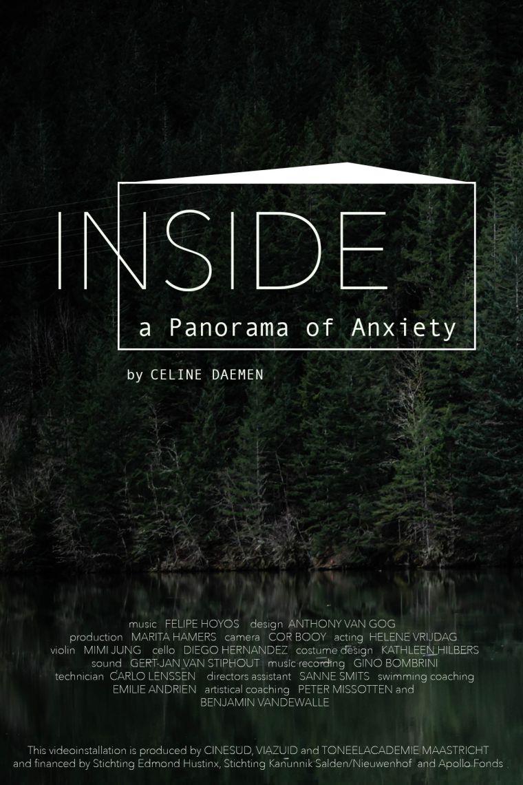 INSIDE, a Panorama of Anxiety is een beeldende en muzikale videoinstallatie over angst en eenzaamheid. Over verloren zijn in een grote wereld, waarin je zo graag gelukkig zou willen zijn, maar simpelweg niet weet hoe. Een associatieve en gevoelsmatige installatie die ervaren moet worden en enkel begrepen kan worden met het hart. Regie: Celine Daemen | Productie: Marita Hamers | Muziek compositie: Felipe Hoyos González | Vormgeving installatie: Anthony van Gog | Camera: Daniel van Hauten | Kostuumontwerp: Kathleen Hilbers | Geluid: Gert-Jan van Stiphout | Muziek opname en mixing: Gino Bombrini, Viool: Mimi Jung, Cello: Diego Hernández | Regieassistentie: Sanne Smits | Techniek: Carlo Lenssen | Coaching: Peter Misotten en Benjamin Vandewalle. Coproductie: CineSud en VIA ZUID Subsidiënten: Stichting Edmond Hustinx, Stichting Kanunnik Salden/Nieuwenhof en Apollo Fonds Te zien:- ITS Festival, Amsterdam: 23 juni 2018