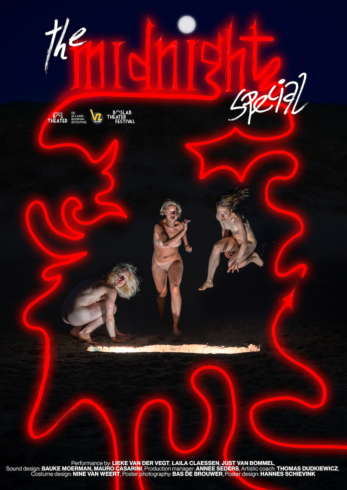 Als de dag in de nacht verandert, ondergaan we een magistrale metamorfose. De duisternis oefent haar aantrekkingskracht uit, drie performers transformeren in hun grootste angst. Een figuur schuifelt door het bos, vindt op de tast een touw en begint met trekken. Uit een stinkende rivier stijgt een spontaan ontbrandende kroonluchter op. De figuur glimlacht goedkeurend. “Welkom bij THE MIDNIGHT SPECIAL.” THE MIDNIGHT SPECIAL is een beeldende locatievoorstelling over de duisternis, geïnspireerd op sprookjes, mythen en ander werk van kunstenaars die obscuriteit romantiseren. In een hyper gestileerd en fragmentarisch theatraal toverspel krijgt de duisternis een stem. Samen proberen we de duisternis in de wereld, maar ook in onszelf, te omarmen. THE MIDNIGHT SPECIAL wordt gemaakt en gespeeld door Just van Bommel, Laila Claessen en Lieke van der Vegt. In 2019 ontmoetten zij elkaar op de performanceopleiding van de Toneelacademie Maastricht. Nu is het moment daar om zichzelf als jong collectief te introduceren in het theaterlandschap. Te zien:- Cultura Nova, Heerlen: augustus 2022
